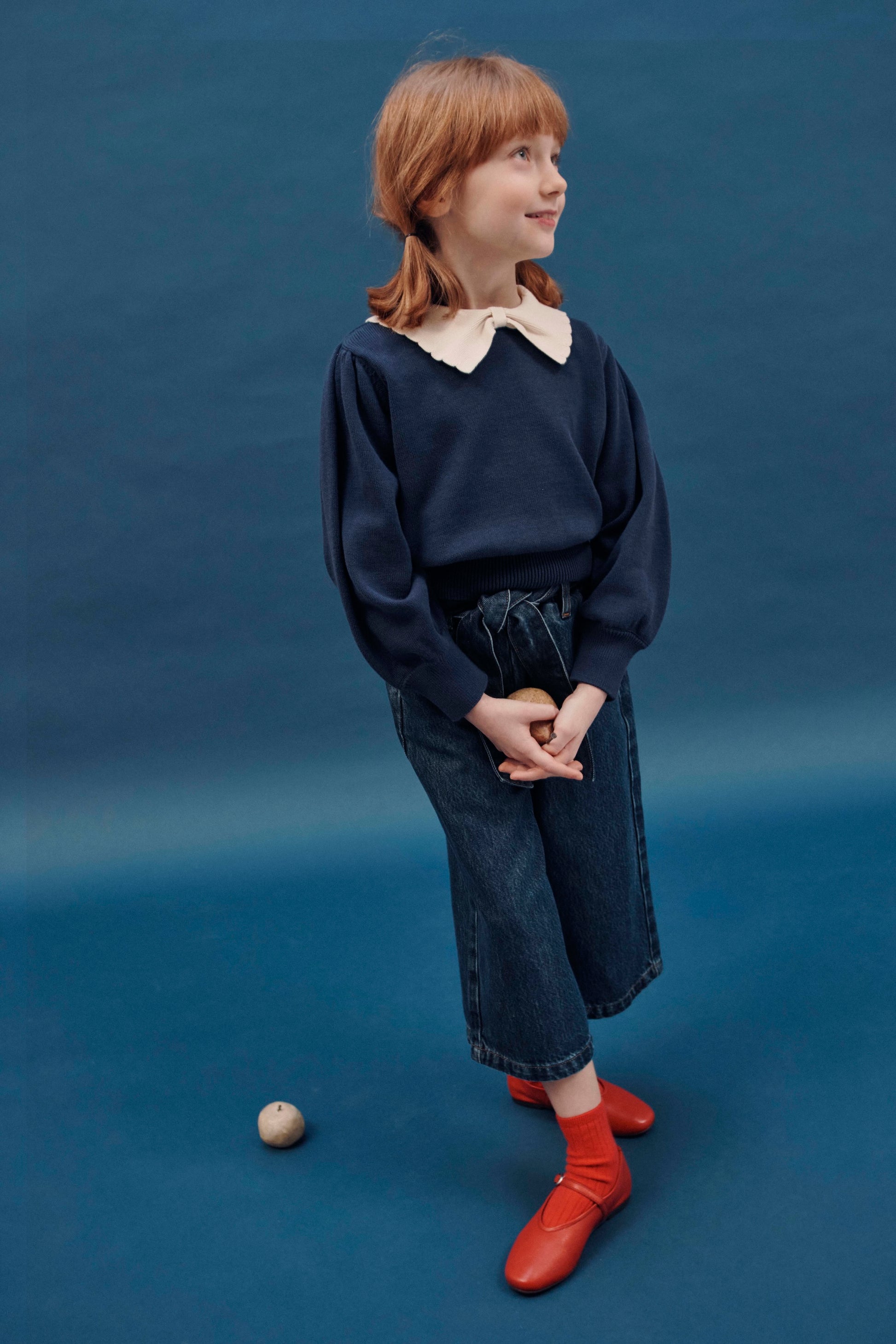 Die Verzierungen befinden sich um die Taille herum, wo der Gummizug einen Volant-Effekt erzeugt und der Gürtel als Accessoire angebracht ist.