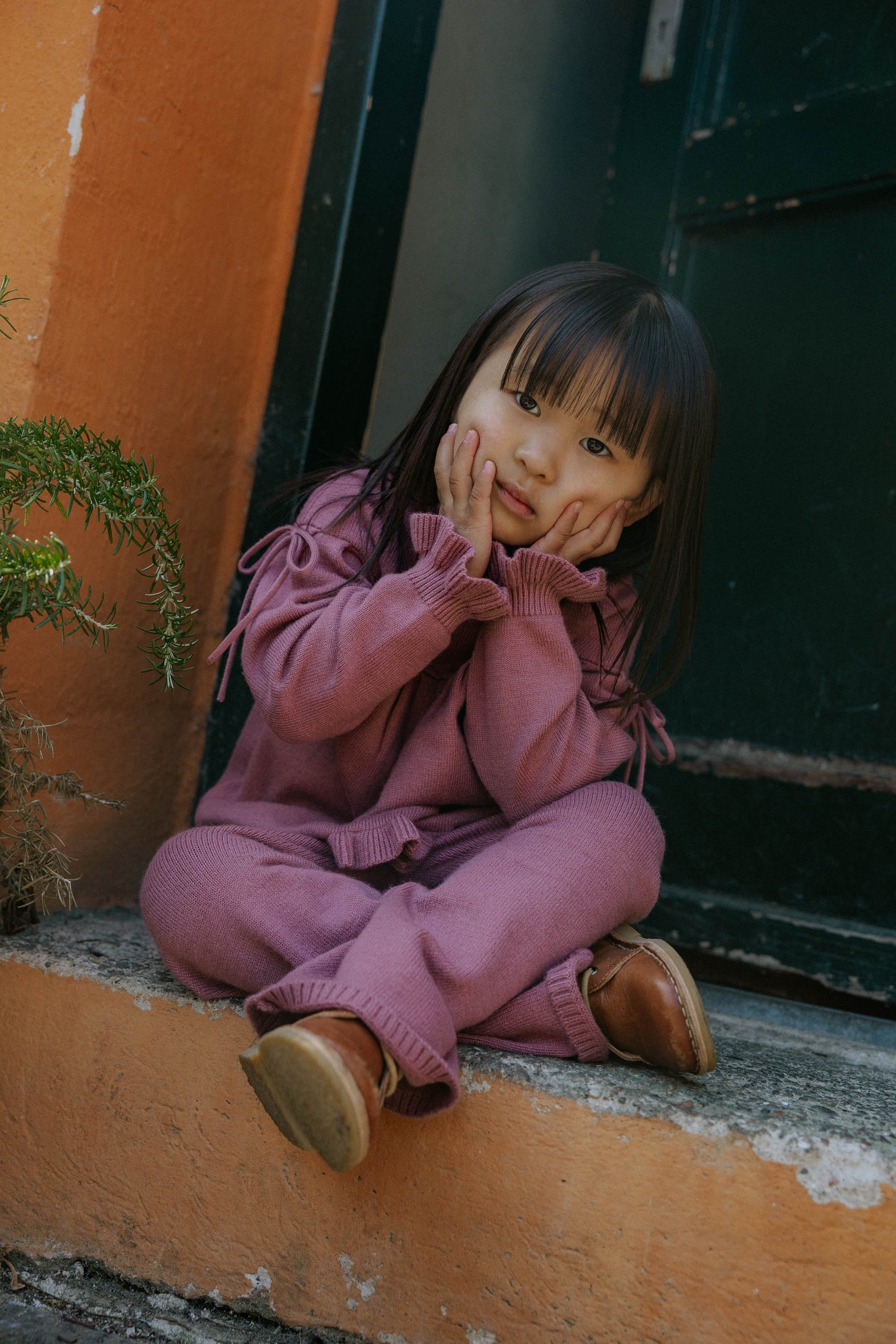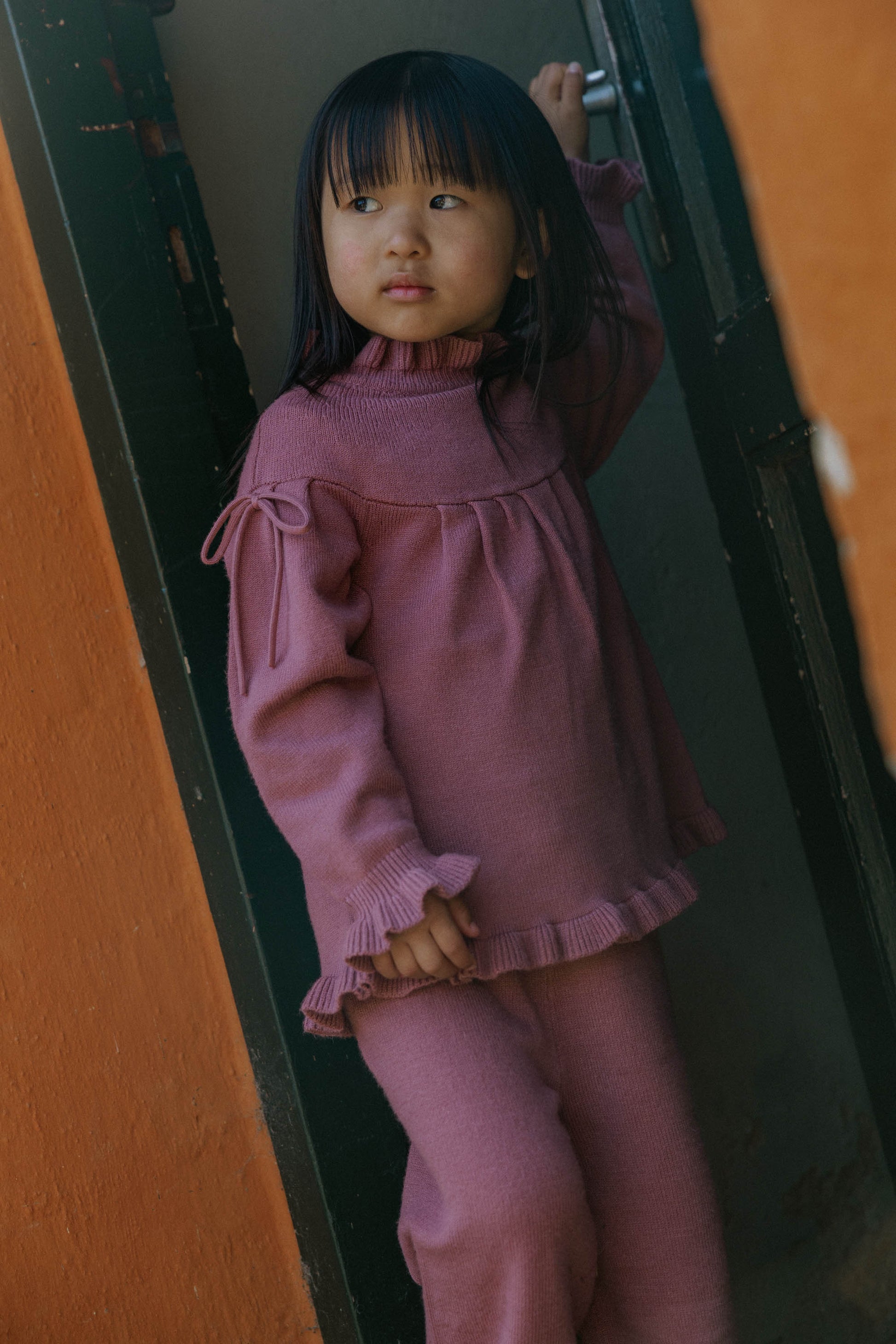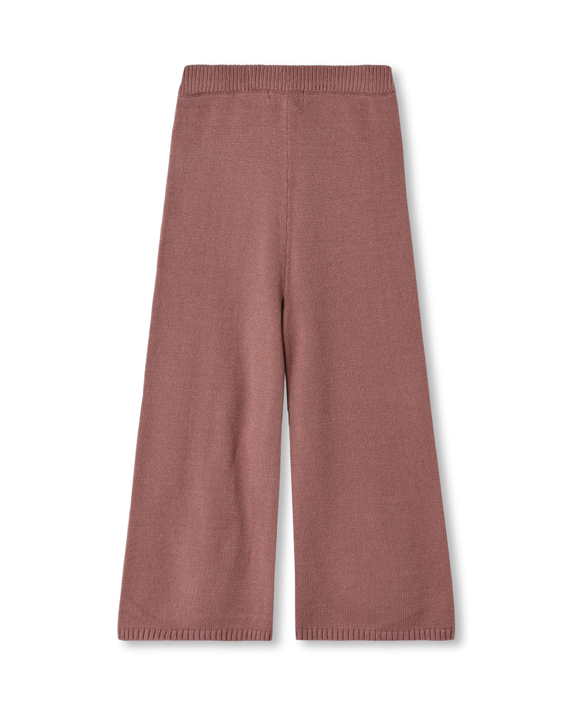 Weiche und warme Strickhose in einem staubigen Rosaton. Die Hose hat weite Beine, die für einen entspannten und modernen Look sorgen. Der elastische Bund sorgt für eine bequeme und flexible Passform, sodass sie ideal zum Spielen und Entspannen ist.