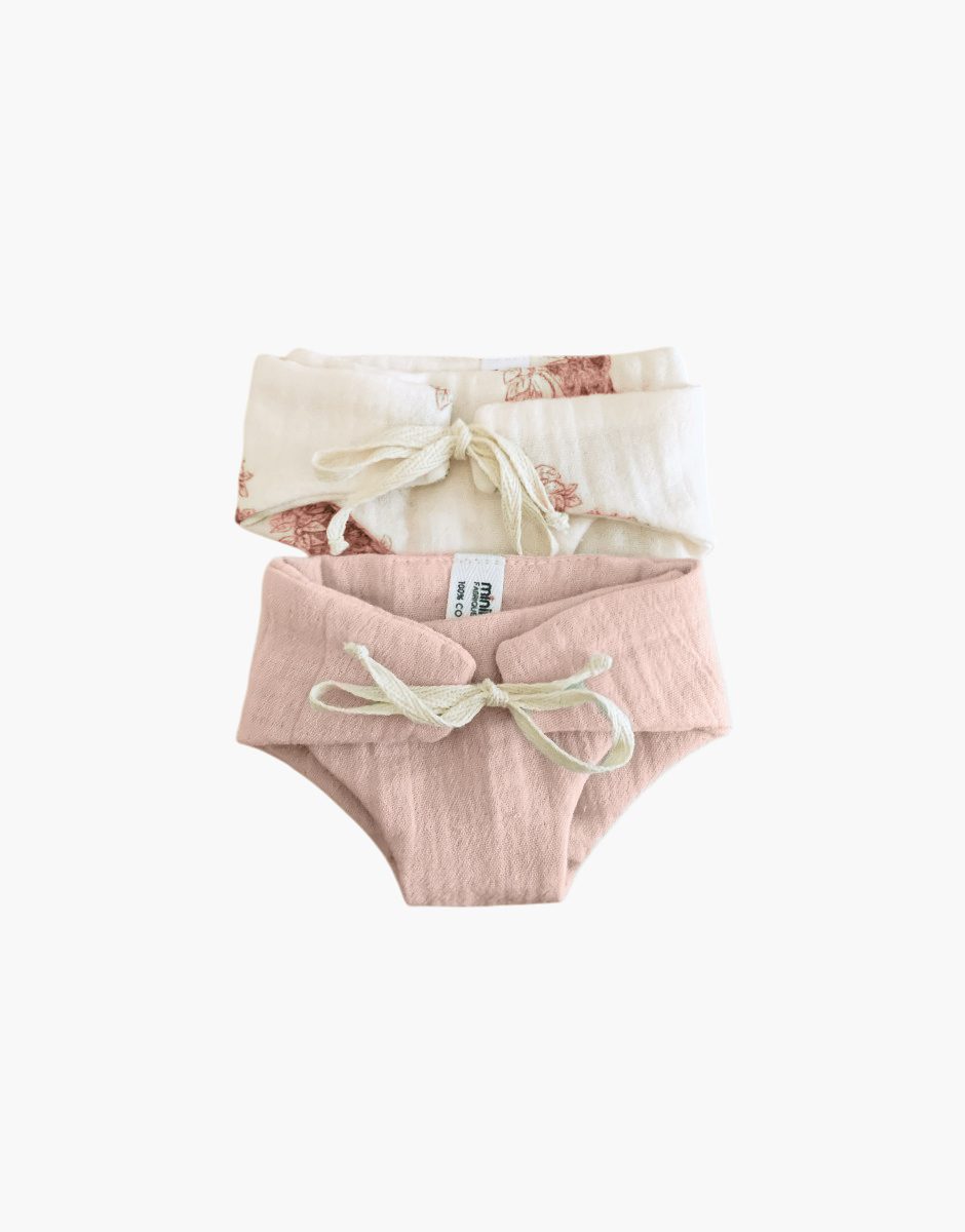 Baumwollgaze-Windeln mit Bändern für Minikane Babies 28 cm und Gordis 34/37 cm Puppen und Babys.