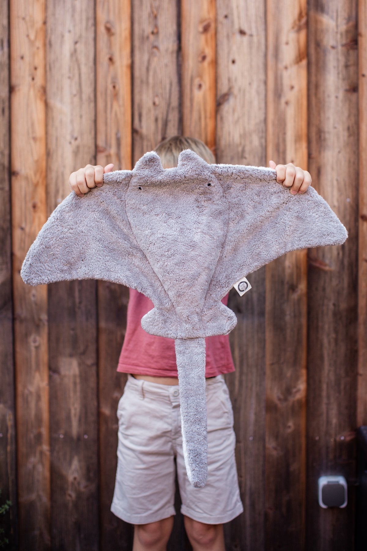 Der große graue Mantarochen aus der Kollektion „Meerestiere“ von Senger Naturwelt bringt kuschelige Wärme und nachhaltiges Design in dein Zuhause. Hergestellt aus GOTS-zertifizierten Materialien aus Deutschland und Europa, ist er ein treuer Begleiter für Kinder und ein stilvolles Dekoelement für Erwachsene. Ob als Schmusetier oder Wärmekissen – unter den großen Schwingen unseres Rochens findet sich Geborgenheit für Groß und Klein.